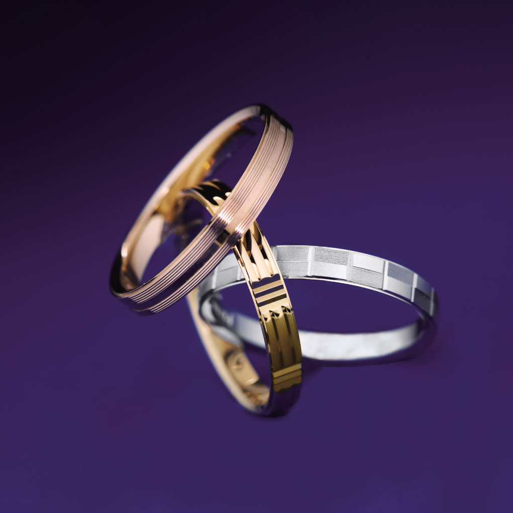 「七宝」「桜」「流水」など、幸せや永遠の絆を象徴する模様が指輪に織り込まれています。