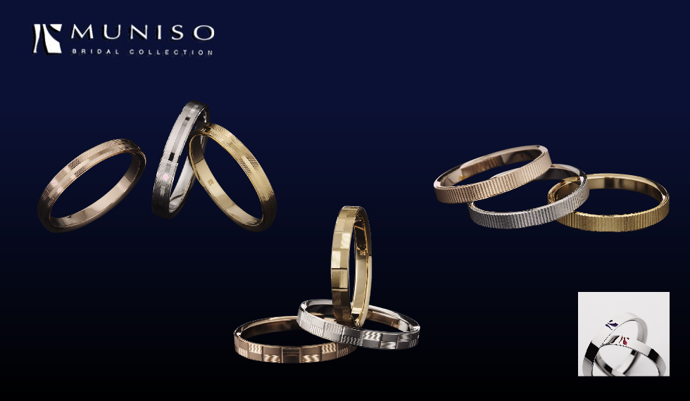 ムニソーの婚約指輪には、伝統的な日本の文様をモダンにアレンジしたデザインが多数。